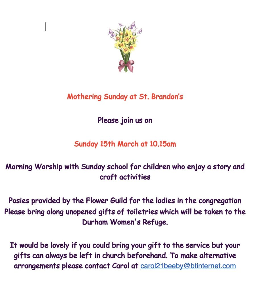 St Brandon’s is the parish church serving Brancepeth village and the surrounding area. (See map.)