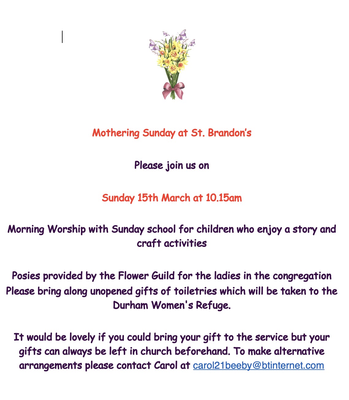 We hope to offer a similar selection of soup and sandwiches on Sunday 15th February 2026 for all who wish to join us.