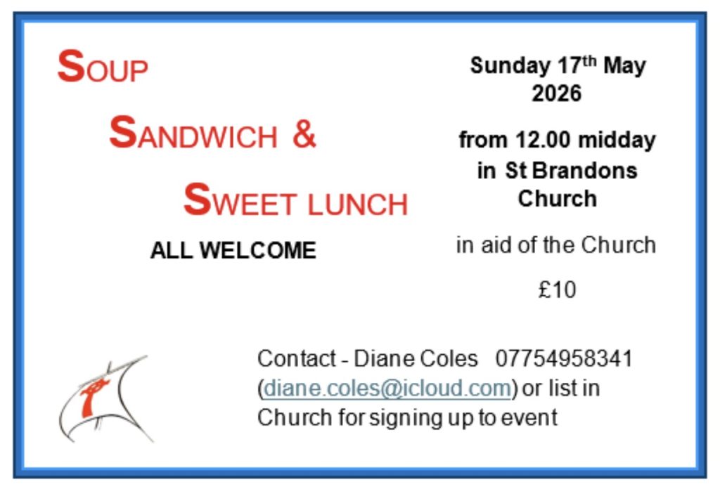 Soup and Sandwich Lunch Sunday 17 May 12.00