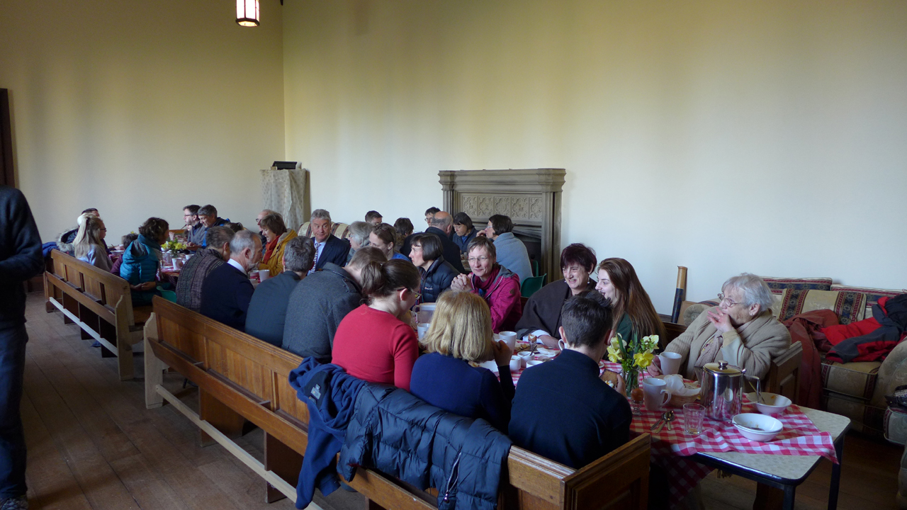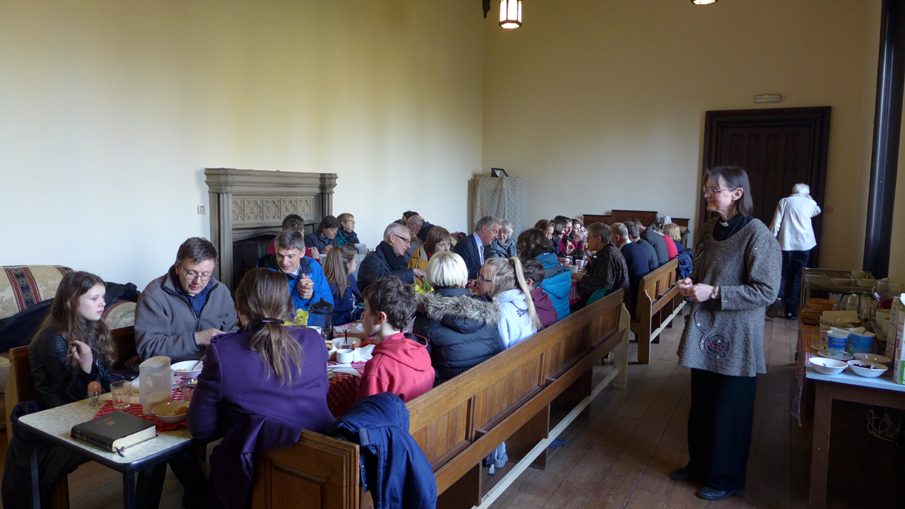 The number of people attending this service seems to increase year by year. For those who have attended the services during Holy Week, following Jesus’ last days with his disciples and culminating in the despair of His crucifixion and death, the joy of this service celebrating His rising from the grave is palpable and real. We hope that these pictures give you a sense of that. Another joy is the sharing of breakfast in Brancepeth Castle provided with great kindness and welcome by the Hobbs family.